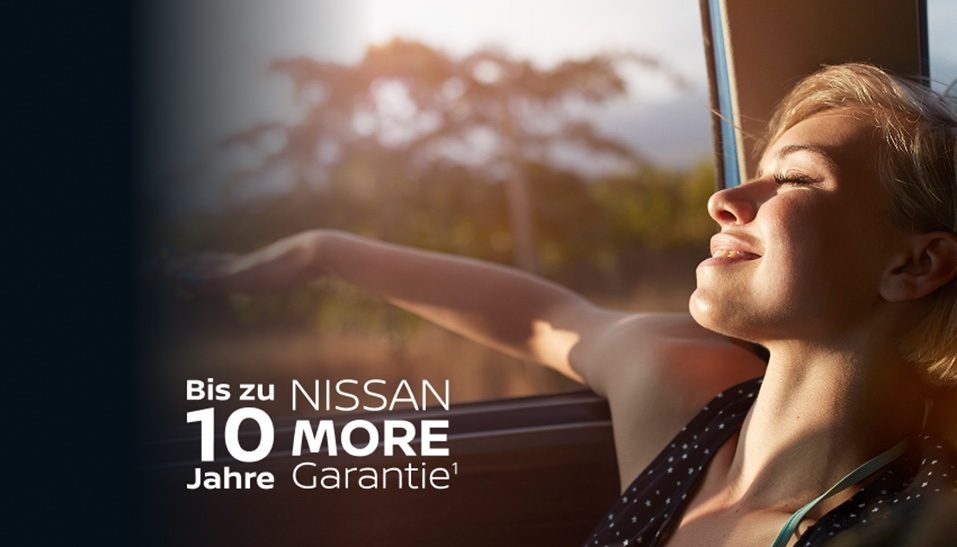 ¹Nissan MORE ist ein von Nissan International Insurance Ltd. angebotener und durch Nissan Deutschland GmbH und ihre Nissan Partner vermittelter Versicherungsschutz für bestimmte mechanische Komponenten (Antriebsstrang), der nach Durchführung einer Wartung aktiviert wird.