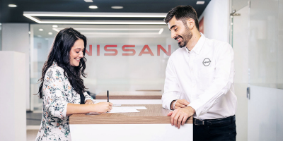 Ein Fahrzeug beim Nissan Händler Probe fahren